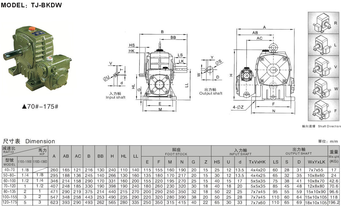 A輸出、輸入軸置式(A入軸在下/S入軸在上/O出軸向上/X出軸向下/T入軸向上/V入軸向下、無(wú)代碼基本型);