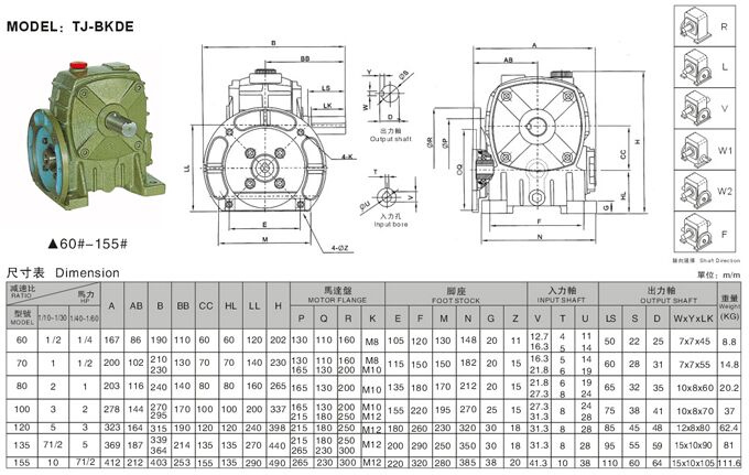 WP蝸輪蝸桿減速機(jī)類別:WP蝸輪蝸桿減速機(jī)